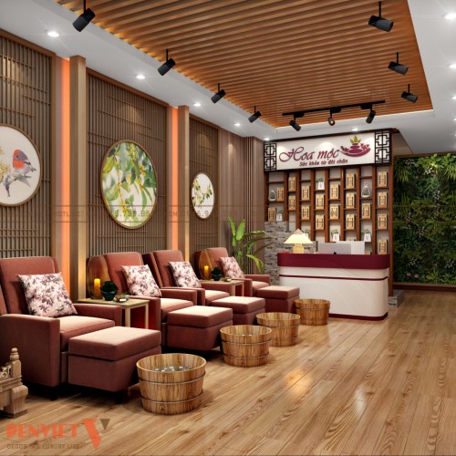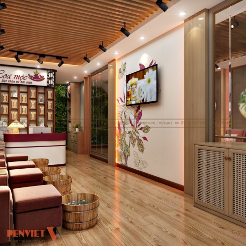 Kinh doanh lĩnh vực chăm sóc massage chân đặc thù nên chủ đầu tư mong muốn có được phương án thiết kế nội thất spa Hoa Mộc đơn giản nhưng ấn tượng. Xin mời bạn đọc cùng PenViet tìm hiểu kỹ hơn về mẫu trang trí không gian kinh doanh này qua nội dung bài viết dưới đây.