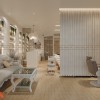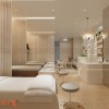 Tổng thể không gian nội thất spa Leehan phân chia các khu vực chức năng rất hợp lý và khoa học. Cụ thể bao gồm nơi làm nail, khu vực massage, khu vực gội đầu. Công năng sử dụng được đáp ứng hợp lý giúp gia tăng hiệu quả kinh doanh. PenViet sử dụng gam màu ghi sáng rất hiện đại, thời thượng không lo lỗi mốt theo thời gian. Quầy lễ tân làm từ gỗ MDF phủ melamine màu sáng với kiểu dáng bo tròn mềm mại.