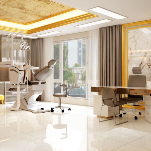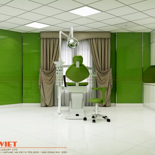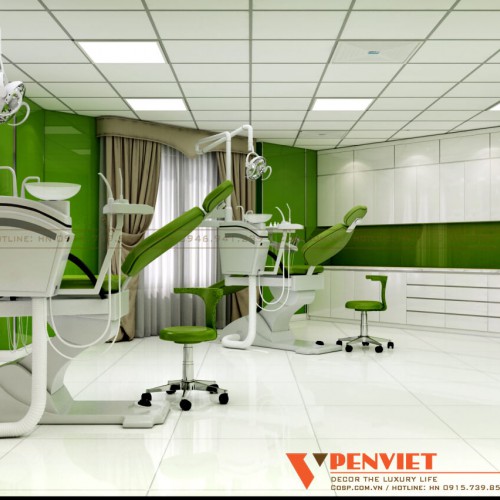 Căn cứ điểm b, điều 26. Điều kiện cấp giấy phép hoạt động đối với phòng khám chuyên khoa, Nghị định 109/2016/NĐ – CP, Phòng khám chuyên khoa phải có phòng khám bệnh, chữa bệnh có diện tích ít nhất là 10 m2 và nơi đón tiếp người bệnh; điểm c, điều này cũng quy định: “Trường hợp phòng khám chuyên khoa răng - hàm - mặt có hơn 01 ghế răng thì phải bảo đảm diện tích cho mỗi ghế răng ít nhất là 5 m2”, do đó, khi setup phòng khám nha khoa này, các kiến trúc sư Penviet đã tính toán và dành diện tích lên tới 55m2 cho không gian khám chữa bệnh với 3 ghế răng. Điều này chẳng những đảm bảo những tiêu chí cần có khi thiết kế phòng khám chuyên khoa Răng – Hàm – Mặt mà còn cho thấy việc hướng đến cung cấp những dịch vụ cao cấp của tổ hợp này.