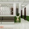 Khu vực sảnh trong thiết kế spa kết hợp phòng khám Hoàng Gia được bố trí thêm 1 quầy lễ tân nhỏ để việc tiếp đón và hỗ trợ khách hàng được chú đáo.