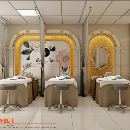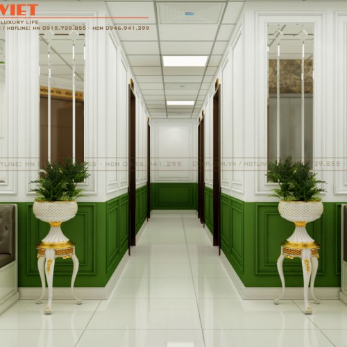 Tinh thần Tân Cổ Điển được thể hiện rõ nét trong mẫu thiết kế spa kết hợp phòng khám