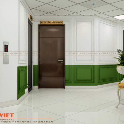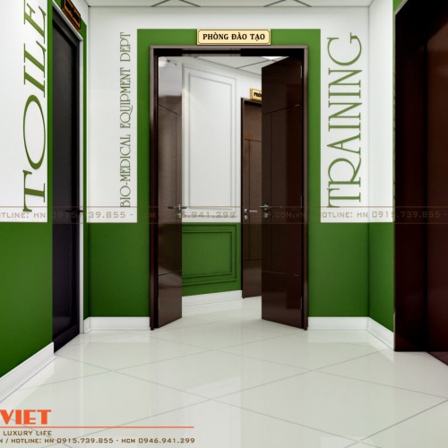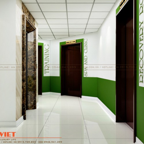 Hành lang rộng rãi cũng giúp cho việc di chuyển được dễ dàng. Đây cũng là một trong những yêu cầu đối với thiết kế phòng khám.