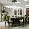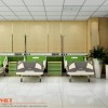 Với khu vực chờ của khách, chúng tôi bố trí các ghế ngồi khung gỗ sồi, sơn inchem hoàn thiện, lưng và đệm ghế bọc da Cleo cao cấp, mút K43 và các tab chân bằng Composite giả gỗ như thật, khung bằng gỗ sồi sơn Inchem, mặt kính tạo sự sang trọng cho không gian.