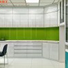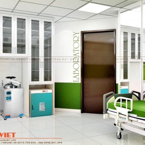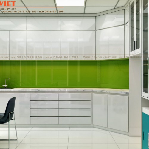 Tủ đựng dụng cụ được chúng tôi làm từ gỗ MDF chống ẩm, sơn Inchem, hậu tủ tấm alu. Đặc biệt, tủ dưới sử dụng đá mặt bàn Lavabo nhân tạo màu trắng vân mây, kính bếp Hải Long. Đây là những loại vật liệu có khả năng chống nước, phù hợp với điều kiện sử dụng trong thiết kế phòng khám.