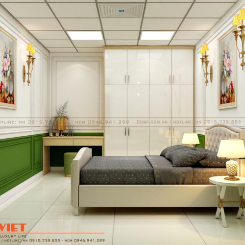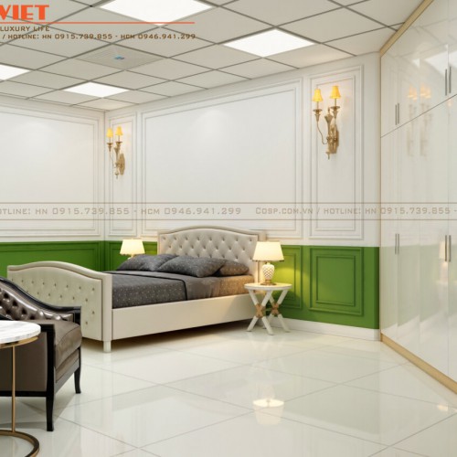 Ngoài những nét đặc trưng của phong cách thiết kế Tân Cổ Điển, màu sắc theo chủ đề cũng được chúng tôi kết hợp khéo léo tạo nên sự thống nhất giữa các không gian.