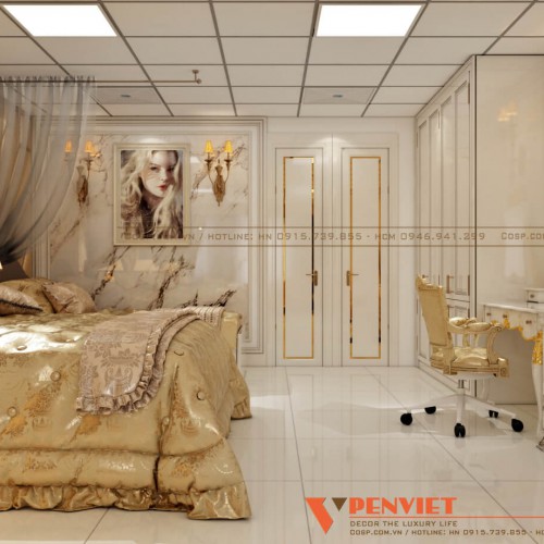 Penviet cũng tập trung vào việc làm nổi bật vẻ đẹp của các bức tường qua những đường phào chỉ trang trí – một nét đặc trưng trong phong cách Tân Cổ Điển.