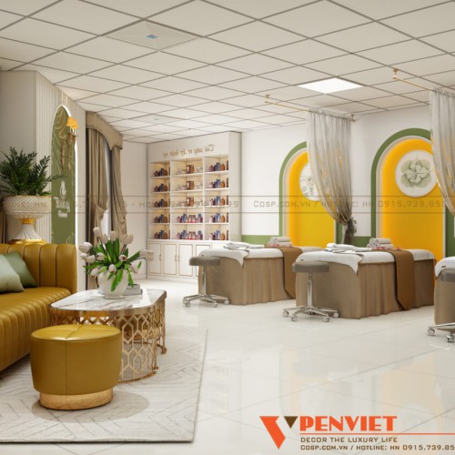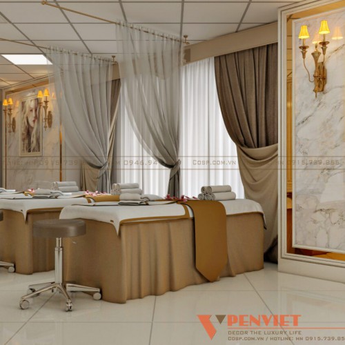 Penviet tư vấn thiết kế spa kết hợp phòng khám theo phong cách Tân Cổ Điển nhằm thể hiện được sự sang trọng, đẳng cấp, phù hợp với đặc thù sản phẩm dịch vụ cũng như nguyện vọng của chủ đầu tư.