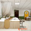 Bục nhận quà khung xương sắt gia cố bục nhận quà, bề mặt cốt MDF lõi xanh tấm Thái, sơn Inchem màu theo phối cảnh, nẹp T inox 304 mạ PVD và vách sau bục bằng khung xương sắt hộp gia cố vách, bề mặt cốt MDF lõi xanh tấm Thái, sơn Inchem màu được thiết kế để tôn lên tặng phẩm được trưng bày.