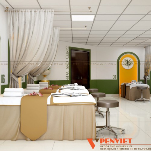 Bên cạnh đảm bảo yếu tố thẩm mỹ, với chúng tôi, việc tư vấn, hỗ trợ khách hàng setup cho cơ sở làm đẹp sao cho đáp ứng được các tiêu chuẩn thiết kế spa do Hiệp hội spa thế giới quy định lại càng quan trọng. Penviet không chỉ chú trọng vào sử dụng màu sắc, ánh sáng phù hợp, chúng tôi còn hết sức quan tâm tới những trải nghiệm của khách hàng bằng cách phân chia mặt bằng khéo léo để vừa bố trí đầy đủ các phòng, khu vực chức năng, vừa mang đến sự thoải mái, riêng tư cho khách hàng.