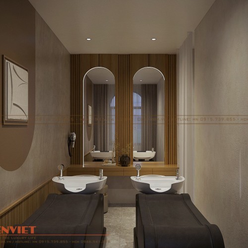 Ở tầng 1 còn được bố trí 2 phòng cung cấp dịch vụ gội đầu riêng nhằm phục vụ khách hàng có yêu cầu cao về sự yên tĩnh.