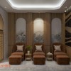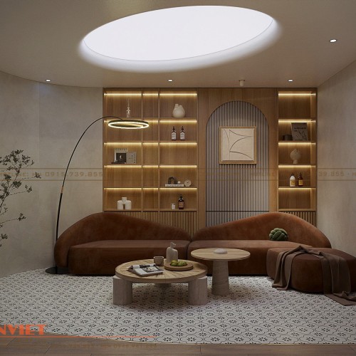 Bước lên tầng 2 của spa, quý khách có thể ngồi chờ nơi khu vực tiếp đón để được nhân viên spa hỗ trợ. Khu vực ngồi chờ được PenViet bố trí ghế sofa dài với 2 chiếc bàn trà lớn nhỏ đan xen ấn tượng. Kiểu dáng ghế được PenViet thiết kế riêng tạo nên nét đặc trưng cho spa.