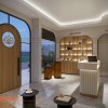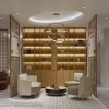 Đối diện nơi ngồi chờ là hệ tủ trưng bày các loại kem dưỡng da và phòng chăm sóc gia đình. Hệ tủ này có sự thống nhất về thiết kế, mẫu mã, chất liệu với tủ trưng bày tầng 1 mang đến tổng thể hài hòa, đồng điệu.