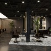 Kệ trưng bày mỹ phẩm âm tường được làm bằng inox mạ đồng tăng sự sang trọng cho không gian.