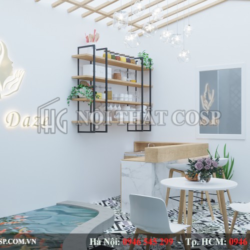 Đến với Công Ty Nội Thất Cosp, Chị Hiền mong muốn có được một không gian nội thất spa hiện đại và sang trọng, phù hợp với những cô nàng có sở thích làm đẹp. Hiểu được nhu cầu của chị, chúng tôi cùng với những KTS tài năng và có nhiều kinh nghiệm trong lĩnh vực thiết kế và thi công nội thất.