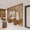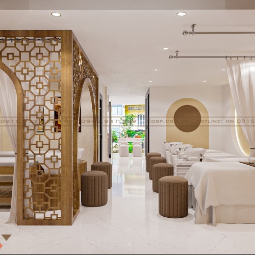 Bạn là chủ kinh doanh thương hiệu spa và có mong muốn sở hữu không gian cửa tiệm hiện đại, tạo điểm nhấn thu hút người nhìn. Hãy tham khảo mẫu thiết kế nội thất spa Elly tại Phú Đô dưới đây với các đường nét cong ấn tượng và tone màu nâu be thời thượng. Chắc hẳn ý tưởng trang trí không gian này sẽ giúp bạn có thêm nhiều gợi ý mới lạ khác.
