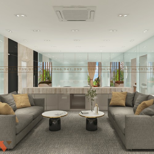 Khu vực sảnh đón tiếp khách với gam màu nhã nhặn