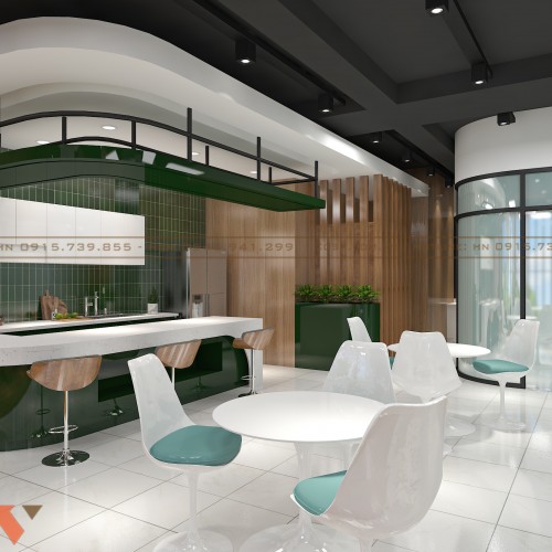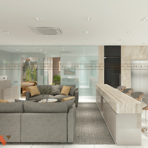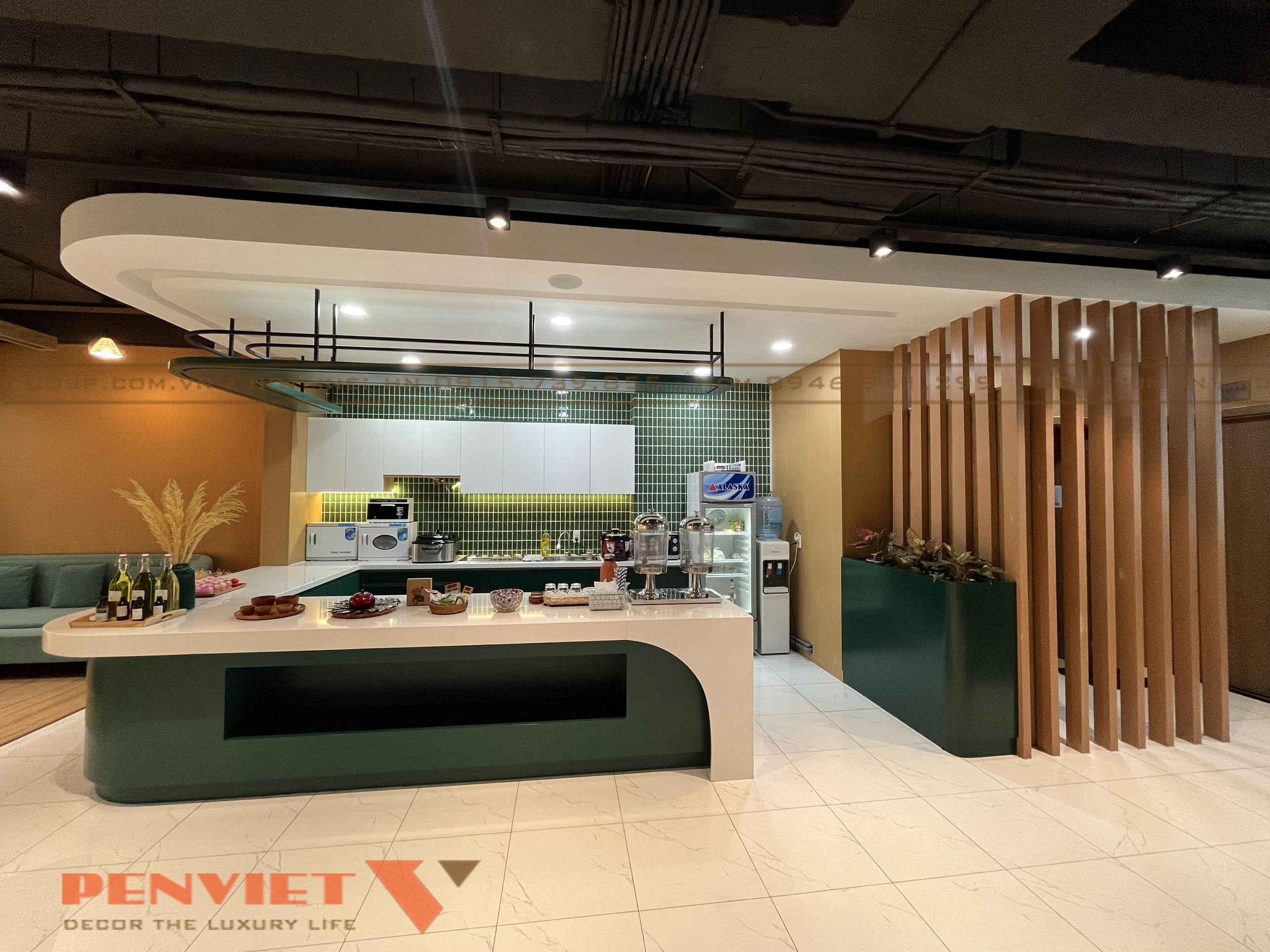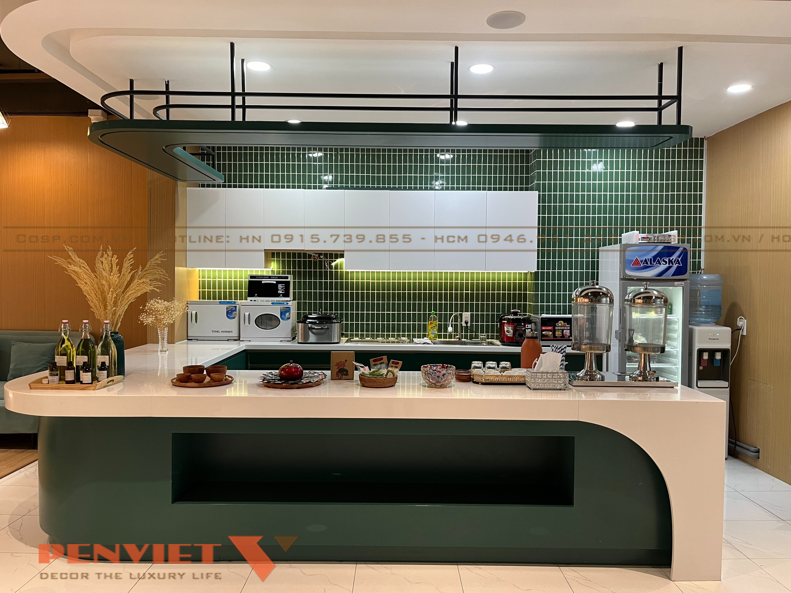 Hệ thống quầy bar kết nối với khu vực sảnh ngồi để nhân viên có thể phục vụ khách hàng nước uống chu đáo. Dịch vụ tận tình sẽ gia tăng trải nghiệm cho khách hàng đến với spa.