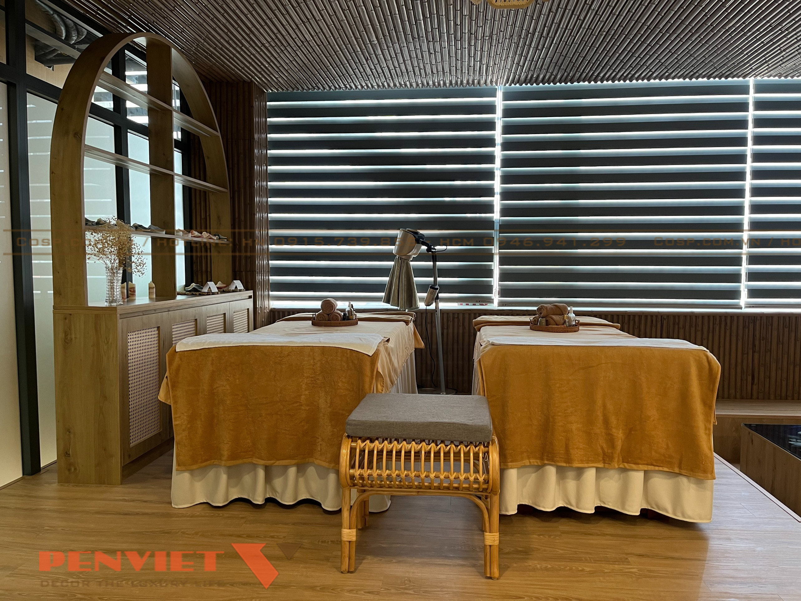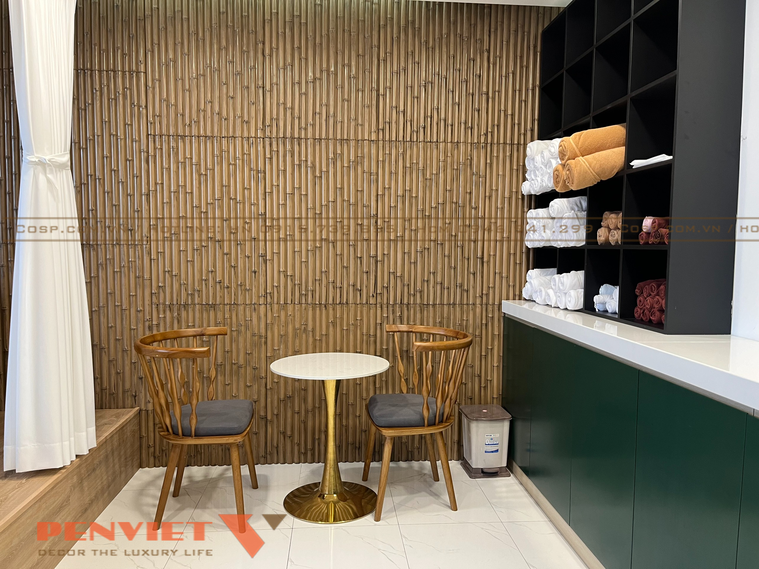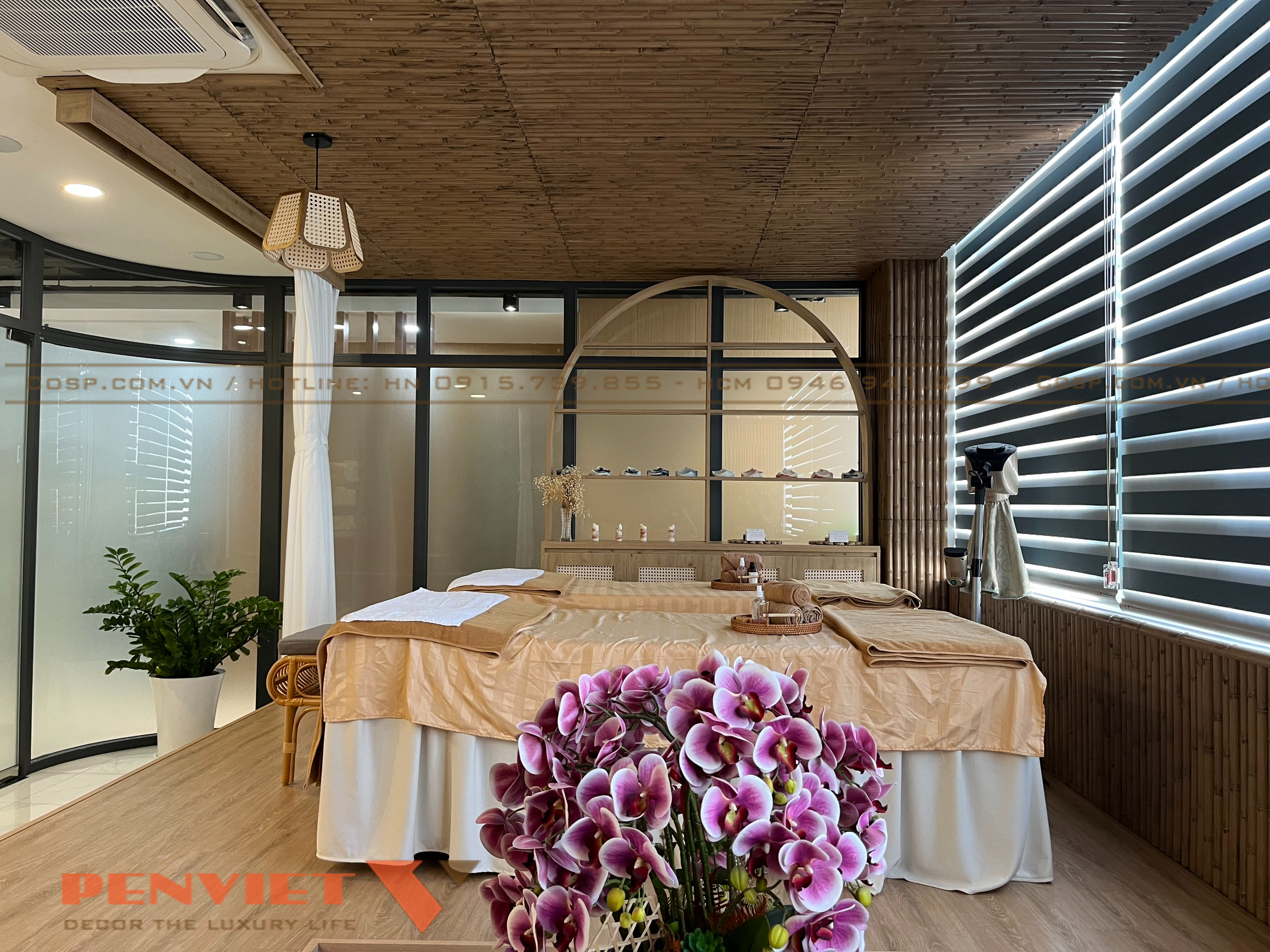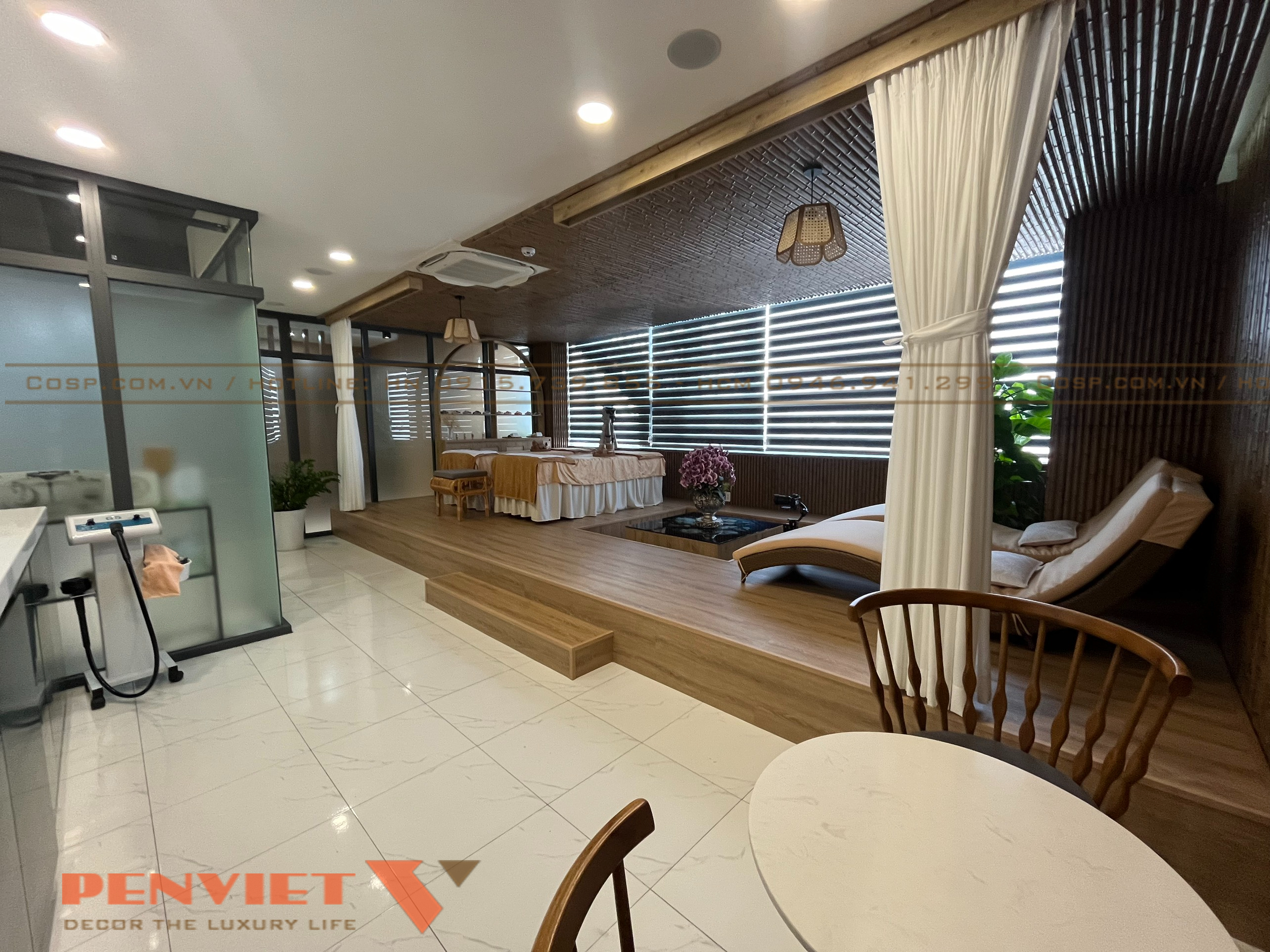 Chủ đầu tư anh Tân mong muốn sở hữu mẫu thiết kế spa hiện đại, tạo sự thoải mái cho khách hàng đến trải nghiệm. Thấu hiểu điều này, PenViet sử dụng các đồ nội thất chất liệu gỗ tăng sự gần gũi, thân thiện với người dùng.