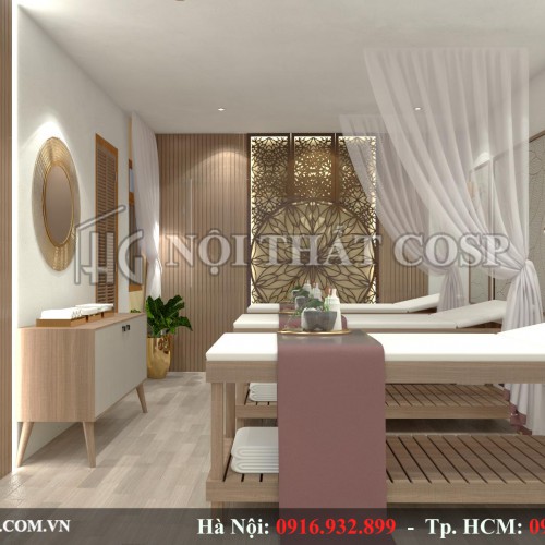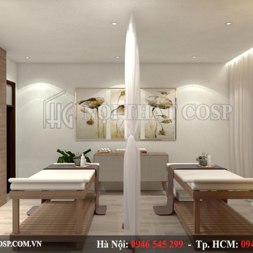 Thiết kế nội thất phòng spa 2 giường gọn gàng