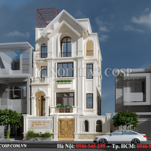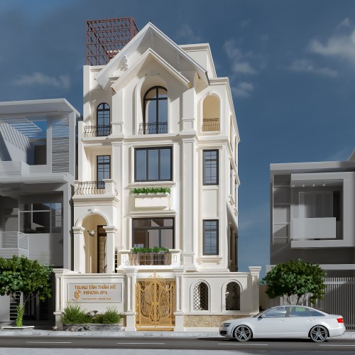 Chính vì vậy, ngay từ mặt tiền của spa các nhà thiết kế đã thể hiện rõ sự sang trọng và đẳng cấp để khẳng định thương hiệu trong tâm trí khách hàng từ cái nhìn đầu tiên. Sử dụng màu sắc, chi tiết trang trí là những yếu tố đặc trưng thể hiện phong cách thiết kế. KTS của chúng tôi sử dụng cổng sắt sơn tĩnh điện màu vàng với họa tiết hoa văn cầu kỳ của phong cách tân cổ điển, sang trọng cho thiết kế spa giúp gây ấn tượng với khách hàng dù chỉ đi ngang qua.