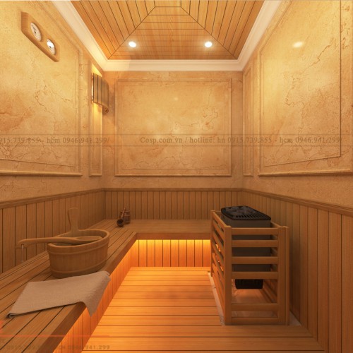 Trong các thiết kế spa chuyên nghiệp, phòng xông hơi khô là một trong những khu vực không thể thiếu để đáp ứng nhu cầu của khách hàng. Tại spa Mimosa, phòng xông hơi được thiết kế hiện đại với vật liệu gỗ thông nhập khẩu bền đẹp cùng hương thơm dễ chịu. Đây là loại vật liệu rất được ưa chuộng trong các thiết kế phòng xông hơi bởi khả năng chống thấm nước rất tốt. Bên cạnh đó, nó còn có màu sắc trang nhã, dễ dàng phù hợp với mọi không gian.