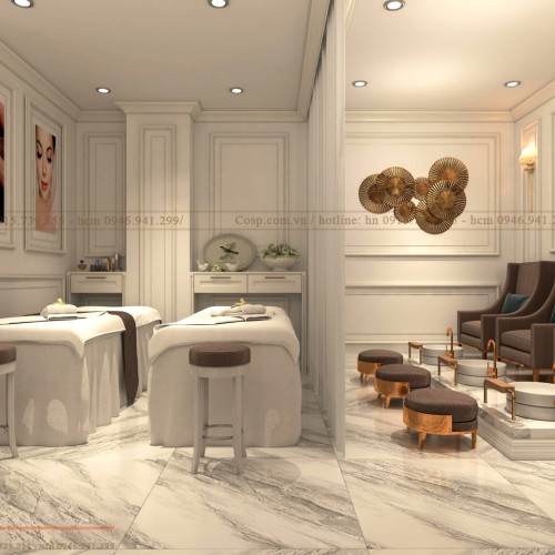 Penviet khéo léo sắp xếp không gian để spa đảm bảo đầy đủ các phòng chức năng, đáp ứng được những tiêu chuẩn của 1 spa cao cấp. Phong cách thiết kế nội thất spa mang hơi hướng thanh lịch và sang trọng nhưng cũng không kém phần ấn tượng với những điểm nhấn thiết kế.