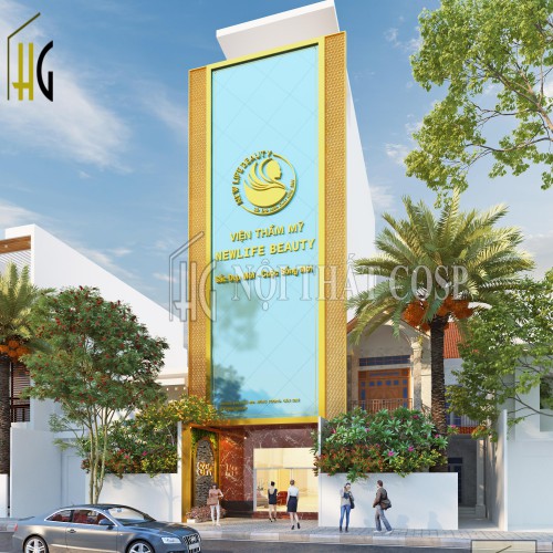 Chủ đầu tư nhắm thẳng vào khách hàng bằng vẻ đẹp sang trọng và cao cấp của mặt tiền spa Newlife Beauty. Với phần viền ngoài màu vàng bao phủ cả mặt tiền spa cùng với logo bảng hiệu được thiết kế tỉ mỉ và độc đáo đã tạo cho khách hàng cái nhìn thiện cảm về spa của anh Lâm.
