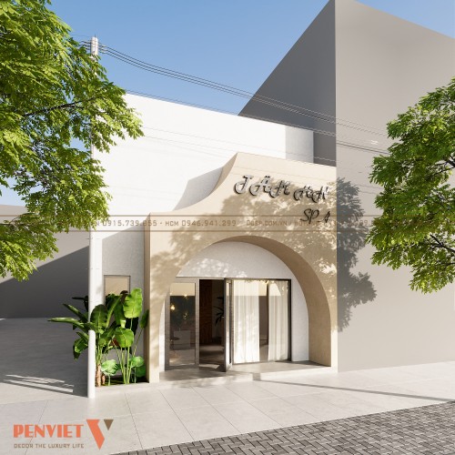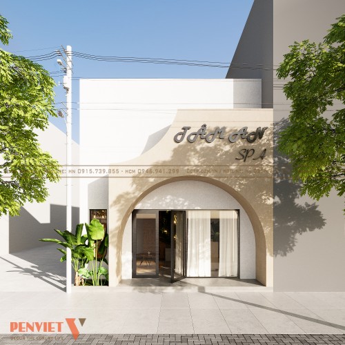Đặc biệt, để tạo sự phá cách, PenViet thiết kế mặt tiền với chi tiết mái vòm ấn tượng. Với gam màu trắng, be đan xen mang đến sự tươi mới, hiện đại cho spa Tâm An.