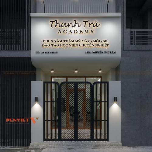 Giống như tên gọi, spa THANH TRÀ ACADEMY mang đến một diện mạo giản dị nhưng vẫn nổi bật. Bảng quảng cáo với khung sắt ốp ALu màu trắng kết hợp cùng chữ mica màu đen bí ẩn vô cùng nổi bật. Trên biển quảng cáo là dòng chữ mô tả dịch vụ cung cấp giúp khách hàng dễ dàng nhận diện và hiểu rõ dịch vụ mà spa cung cấp.