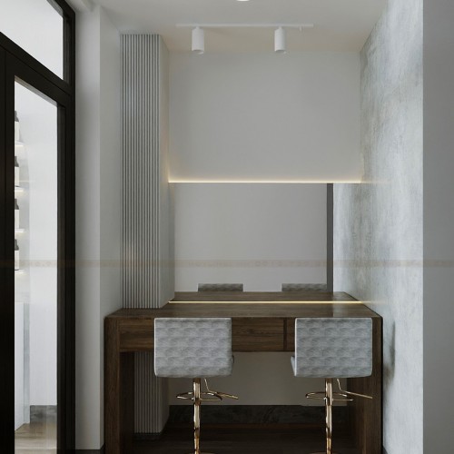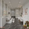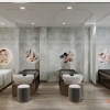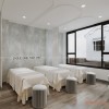 Vách tường sơn hiệu ứng xi măng rất ấn tượng, tạo nên nét độc đáo cho không gian spa. Bên cạnh đó, với hệ cửa sổ kích thước lớn tạo không gian mở thông thoáng gần gũi tự nhiên.