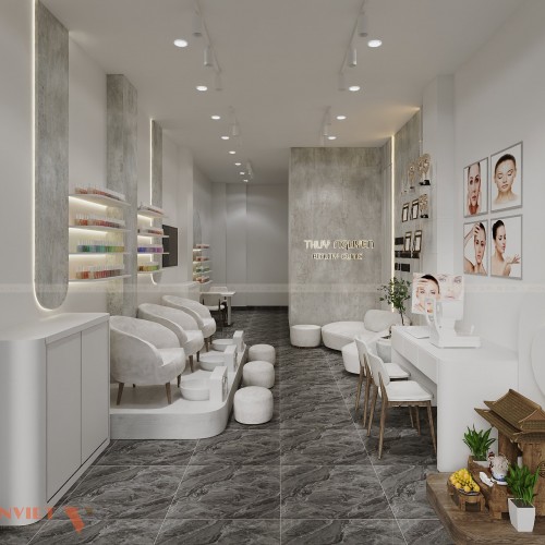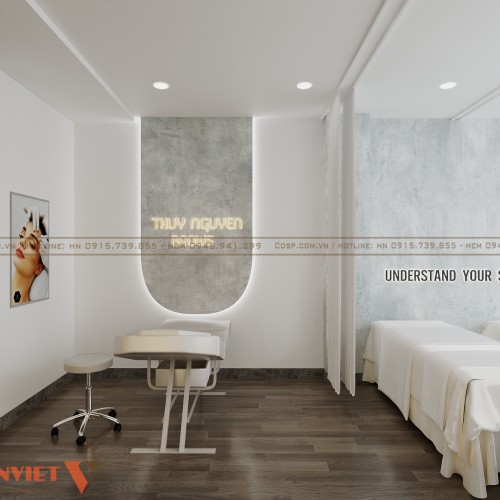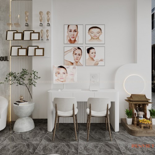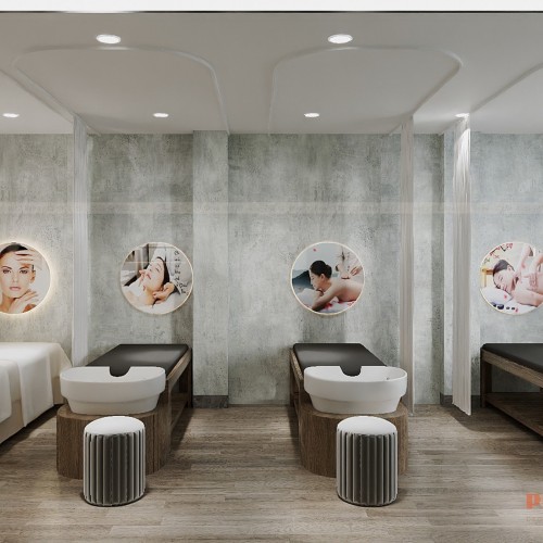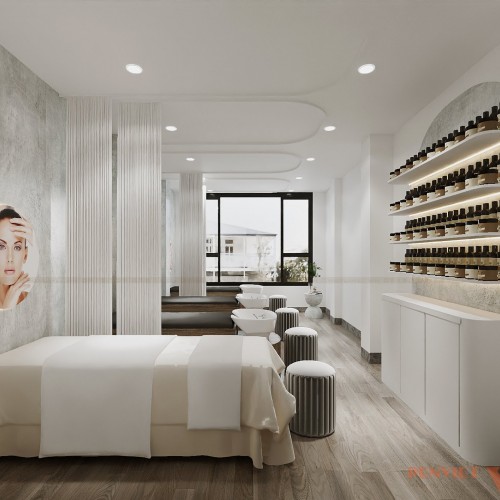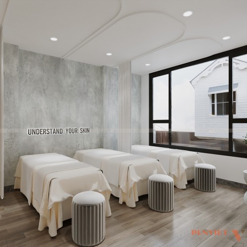Spa Thùy Nguyễn phân chia không gian làm 3 tầng với các khu vực chức năng riêng biệt phục vụ hiệu quả nhất cho khách hàng. Chi tiết thiết kế nội thất cho từng khu vực như sau:
