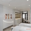 Góc bên phải của tầng 2 là hệ tủ trưng bày các sản phẩm chăm sóc sắc đẹp của spa phân phối. Hệ tủ có nhiều tầng kết hợp đèn LED chiếu sáng, làm nổi bật thêm cho các loại mỹ phẩm trưng bày.