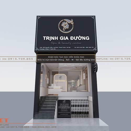 Khác hẳn với các tiệm spa khác, Trịnh Gia Đường của chủ đầu tư anh Hùng được khoác lên mình chiếc áo màu đen cực kỳ ấn tượng. Toàn bộ mặt tiền của spa sử dụng gam màu đen huyền bí vừa độc đáo vừa mới lạ. Gam màu đen hiện đại chính là điểm nhấn thu hút mọi ánh nhìn của người đi đường đối với spa.