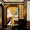 Phòng massage KTS không sử dụng cửa mà thay bằng rèm để tách làm hai không gian, giúp cho phòng rộng rãi hơn. Ở giữa được thiết kế vách dạng vòm, ốp gỗ, tạo đường nét cho phòng. Bộ giường massage được lựa chọn chất liệu cao cấp, kích thước giường spa phù hợp giúp khách hàng thoải mái nhất. KTS tận dụng cả tường của phòng để thiết kế những bộ khung trang trí đẹp mắt, ngoài việc để bộ kệ bày sản phẩm.