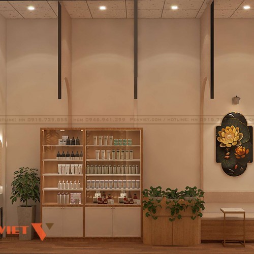 Trên đây là những điểm nhấn của mẫu thiết kế spa và cửa hàng phong thủy Phúc Tâm An. Nếu bạn cần tư vấn thêm về các phương án trang trí không gian, hãy liên hệ PenViet để được hỗ trợ.