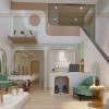 Tầng này chuyên cung cấp dịch vụ spa giống khu vực tầng 1 nên có cách bố trí nội thất tương đồng. Hệ tủ trưng bày sản phẩm chăm sóc sắc đẹp được thiết kế nhiều tầng, có đèn LED chiếu sáng tăng thêm phần nổi bật và lung linh.