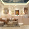 Thiết kế spa 45m2 với phòng khách sang trọngHệ thống ánh sáng được kết hợp từ đèn downlight âm trần và đèn thả trang trí giúp chiếu sáng đầy đủ cho toàn bộ không gian phòng khách.