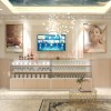 Phía bên trên là chiếc tivi và 2 bức tranh PP viền inox mạ vảng rất đẹp, tạo điểm nhấn cho không gian phòng khách thêm bắt mắt và thu hút.