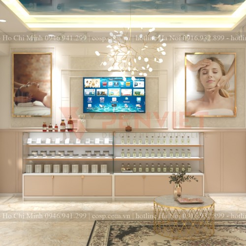 Thiết kế spa 45m2 LyLy Beauty của chị Tiên tại quận Thủ Đức có tone màu nhẹ nhàng cùng chất liệu nội thất sang trọng đã mang lại không gian spa nên chuyên nghiệp và cao cấp hơn. Các mẫu thiết kế 3D chúng tôi gửi cho khách hàng đều được vẽ tỉ mỉ với nhiều góc nhìn khác nhau đảm bảo khách hàng hiểu rõ nhất về sản phẩm. Hãy cùng Nội thất Penviet tham khảo những hình ảnh thiết kế nội thất spa đẹp dưới đây nhé.