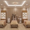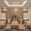 Hệ thống ánh sáng là những đèn âm trần có ánh sáng trắng hiện đại, cùng với đó là sự kết hợp với chiếc đèn chùm heracleum rất đẹp. Giường như khi bước vào spa, khách hàng đã cảm nhận được sự cao cấp của cả spa qua phòng khách đẹp và sang trọng thế này. Tạo được ấn tượng ban đầu tốt đẹp cho khách khi bước vào spa đẹp ở Đồ Sơn chính là tâm huyết của đội ngũ KTS tài giỏi của chúng tôi