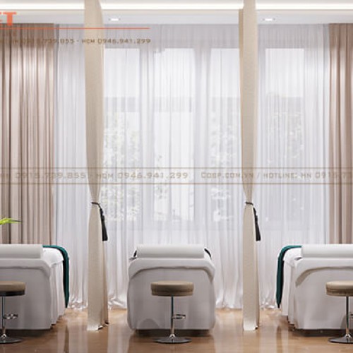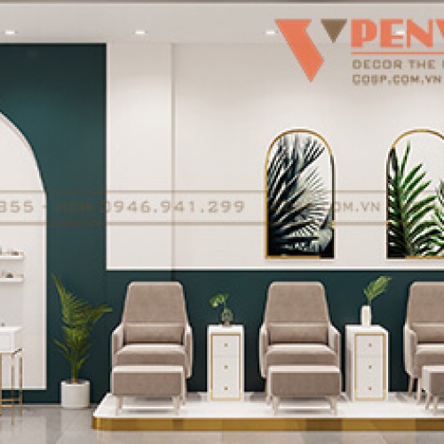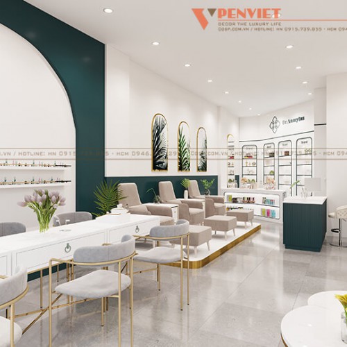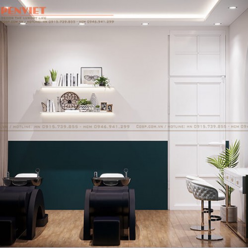 Phong cách hiện đại được các kiến trúc sư Penviet tư vấn cho chủ đầu tư nhằm mang đến một không gian vừa chuyên nghiệp, vừa sang trọng, cao cấp để khách hàng trải nghiệm những dịch vụ làm đẹp hoàn hảo. Ý tưởng của chúng tôi là sử dụng những chi tiết trang trí, kết hợp với gam màu xanh đang là xu hướng trong thiết kế nội thất để làm điểm nhấn cho không gian.