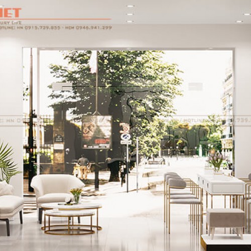 Việc bố trí nội thất dọc 2 bên tường, tạo thành lối đi giữa cửa hàng không chỉ mang đến sự thông thoáng cho cửa tiệm mà còn giúp cho nhân viên và khách hàng di chuyển thuận tiện.