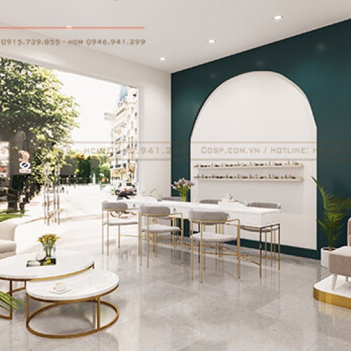 Căn cứ vào đặc trưng dịch vụ, tầng 1 của spa được Penviet setup với các khu vực chức năng bao gồm: không gian trưng bày sản phẩm, khu vực tiếp đón và khu vực làm nail.