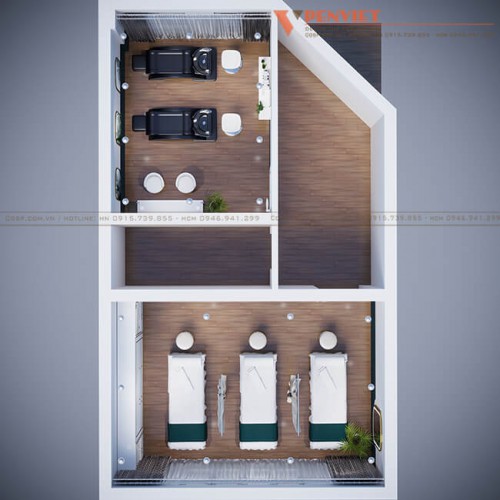 Mặc dù mặt bằng có nhiều khuyết điểm, song, bằng kinh nghiệm và sự sáng tạo, Penviet đã mang đến cho chủ đầu tư một không gian ấn tượng, tạo nên điểm khác biệt với các đối thủ cạnh tranh, giúp thu hút khách hàng. Giải pháp thiết kế spa này có liệu có phải là phương án bạn đang tìm kiếm không? Liên hệ ngay với Penviet để trải nghiệm dịch vụ thiết kế, thi công hoàn hảo nhé!