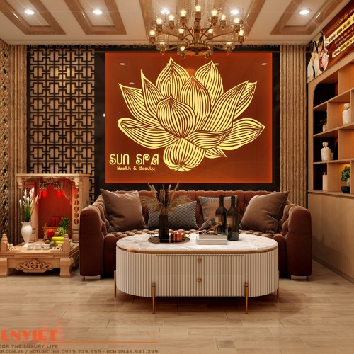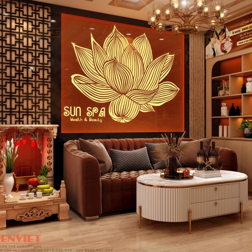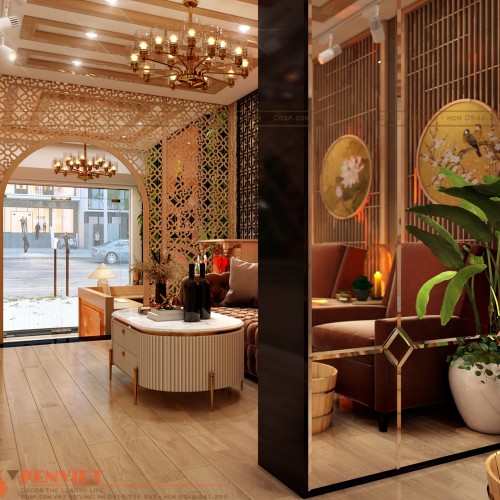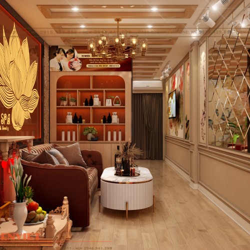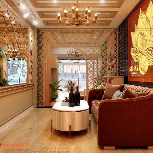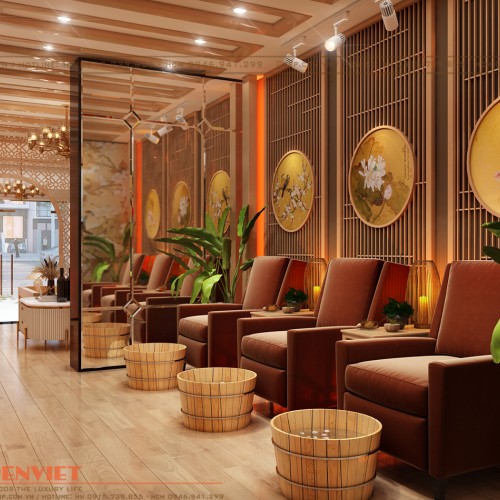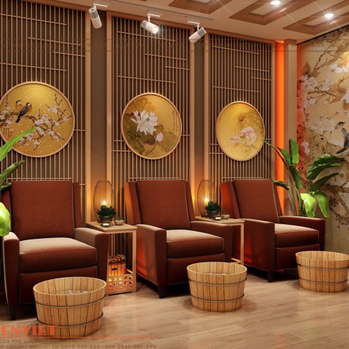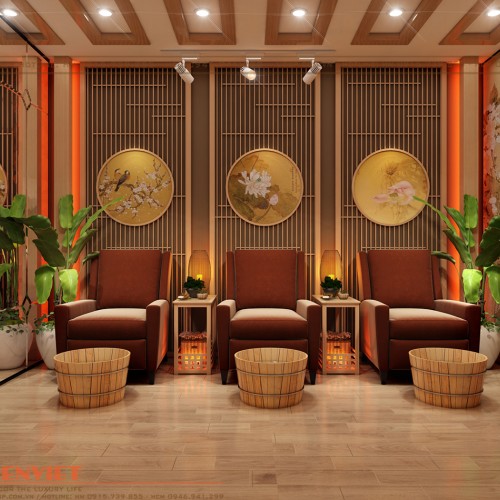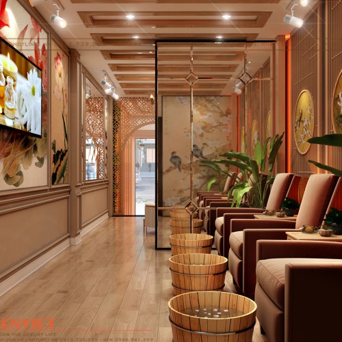 Mẫu thiết kế spa dưỡng sinh 220m2 tại Pháo Đài Láng, Đống Đa, Hà Nội gây ấn tượng ngay từ cái nhìn đầu tiên bởi vẻ đẹp độc đáo mang phong cách Trung Hoa
