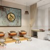Phòng massage và gội sấy được bố cục trong cùng khoảng không gian phòng rộng lớn và được ngăn cách với nhau bằng rèm mềm mại. Đây là phương án vừa tạo sự riêng tư cho khách hàng vừa mang đến không gian thông thoáng hơn.