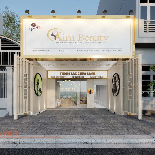 Ở mặt tiền Spa Kim Beauty, Penviet đã tư vấn cho khách hàng sử dụng hệ biển quảng cáo lớn sử dụng những gam màu gắn liền với nhận diện thương hiệu thu hút và gây ấn tượng đối với khách hàng.