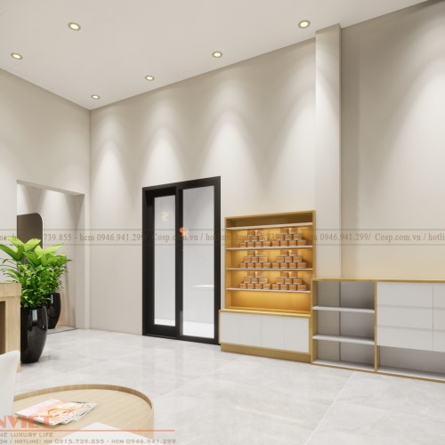 Thiết kế spa sử dụng màu trắng chủ đạo nhằm tạo sự liên kết không gian chức năng vừa có thể tạo hiệu ứng thị giác mở rộng không gian, khiến cửa tiệm trông có vẻ rộng rãi hơn.