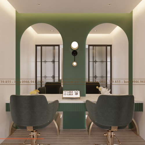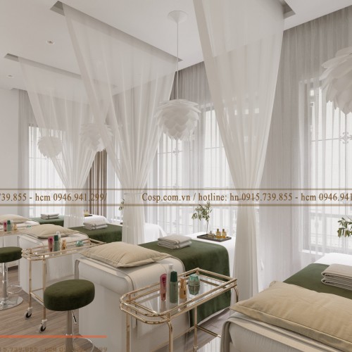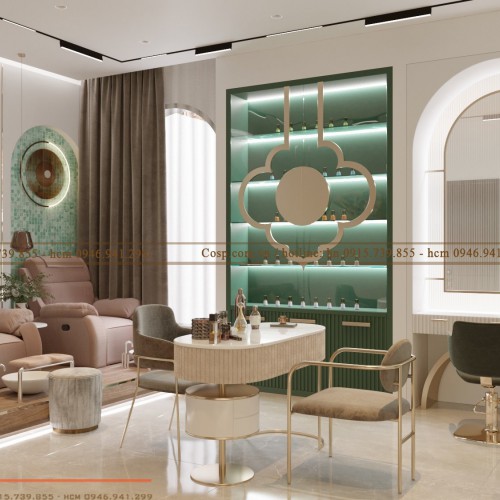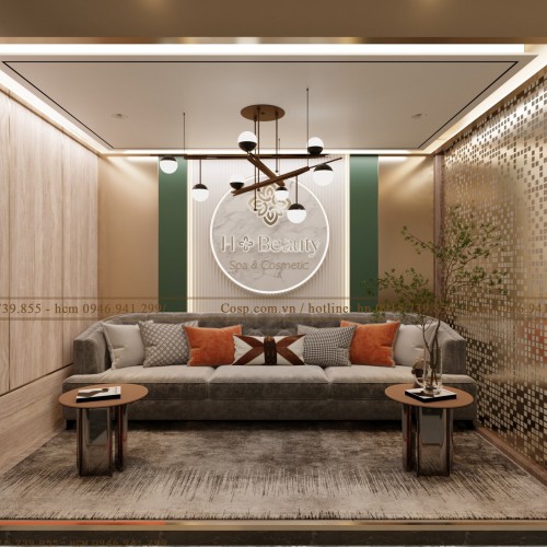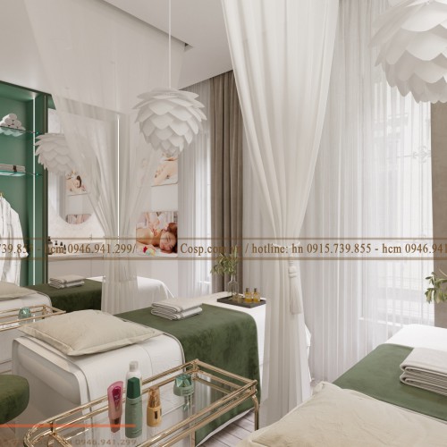 Màu sắc cùng những chi tiết trang trí được kết hợp hài hòa giúp làm toát lên tinh thần của mẫu thiết kế spa – vừa sang trọng, vừa hiện đại.