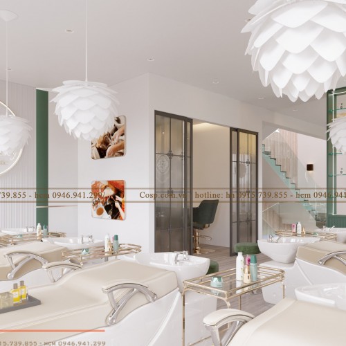 Ngoài việc bố trí các giường gội cao cấp, mang đến cảm giác thoải mái, dễ chịu cho khách hàng, Penviet cùng không quên tạo sự ghi nhớ cho khách hàng về địa chỉ làm đẹp cao cấp này.